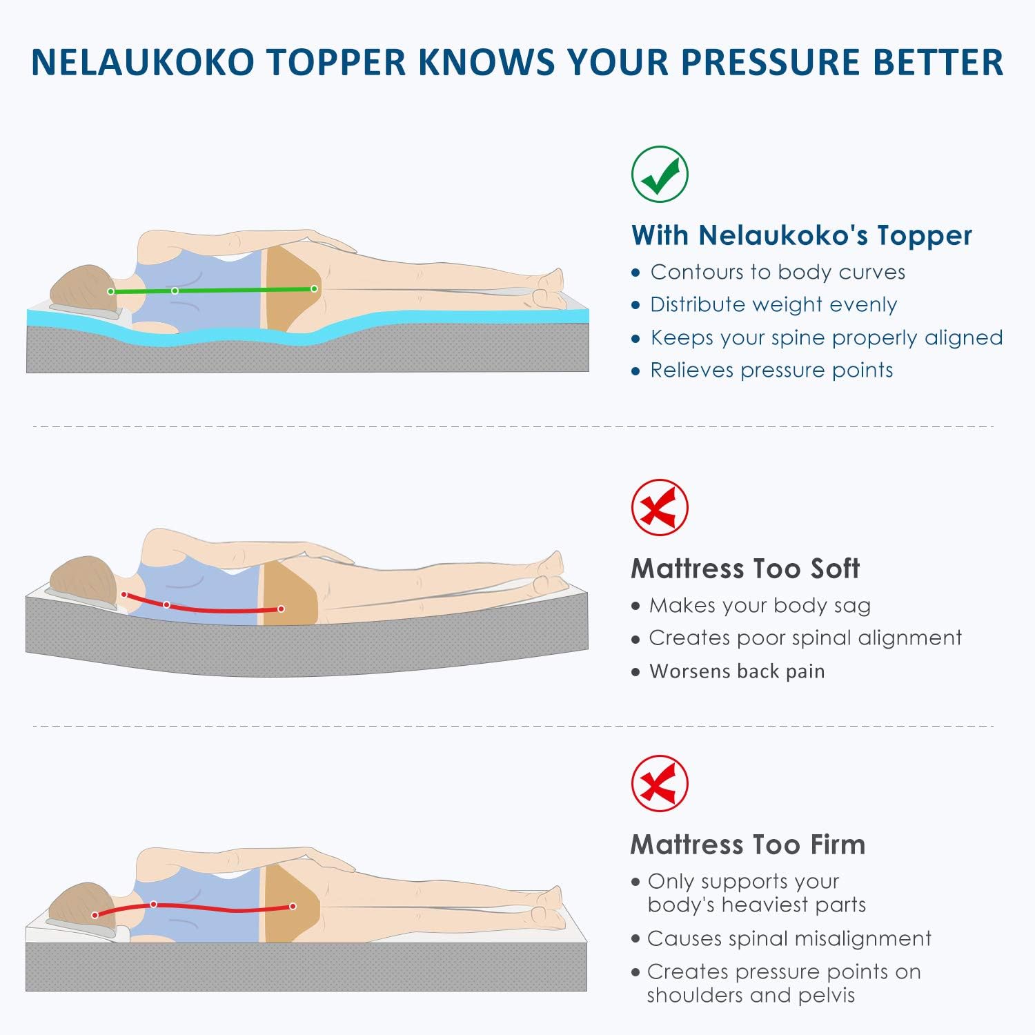 Amazon Com Nelaukoko 2 Inch Memory Foam Mattress Topper Twin Xl