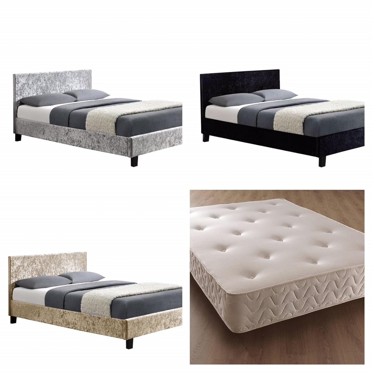 Modern Crushed Velvet Bed Frame With Memory Foam Pocket Sprung