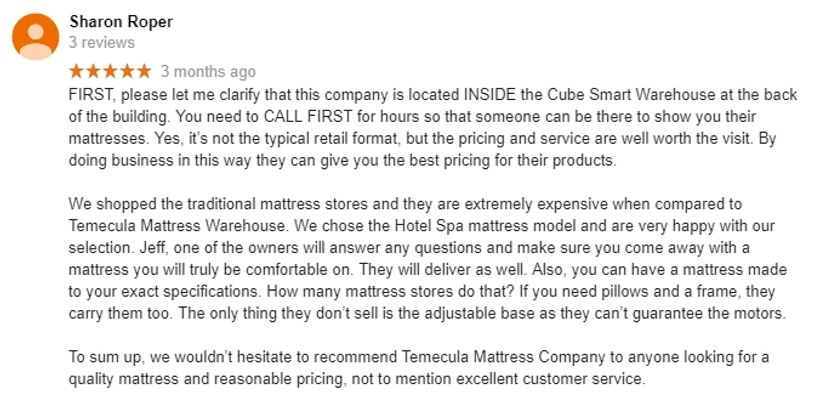 7 reviews mattresses paul was. Establishment home goods store and furniture store temecula mattress warehouse at 28401 rancho california road temecula ca 92590 us. 20 reviews of temecula mattress warehouse i needed a queen size low profile box spring and after calling all of the mattress stores in temecula this is the best price and quality for sure.