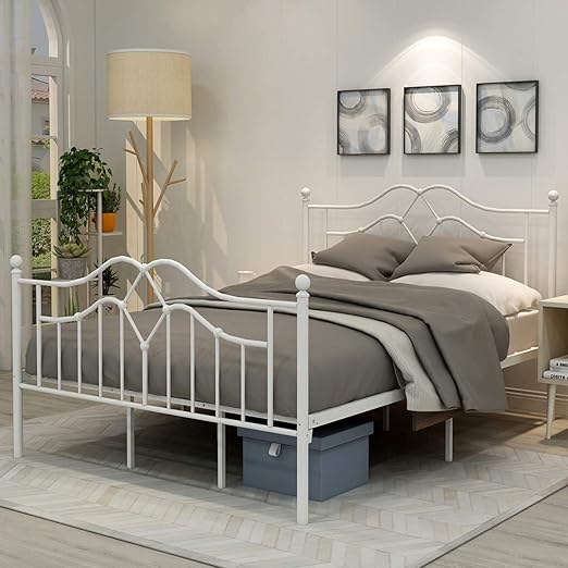 Amazon Com Metal Bed Frame Queen Size Platform No Box Spring